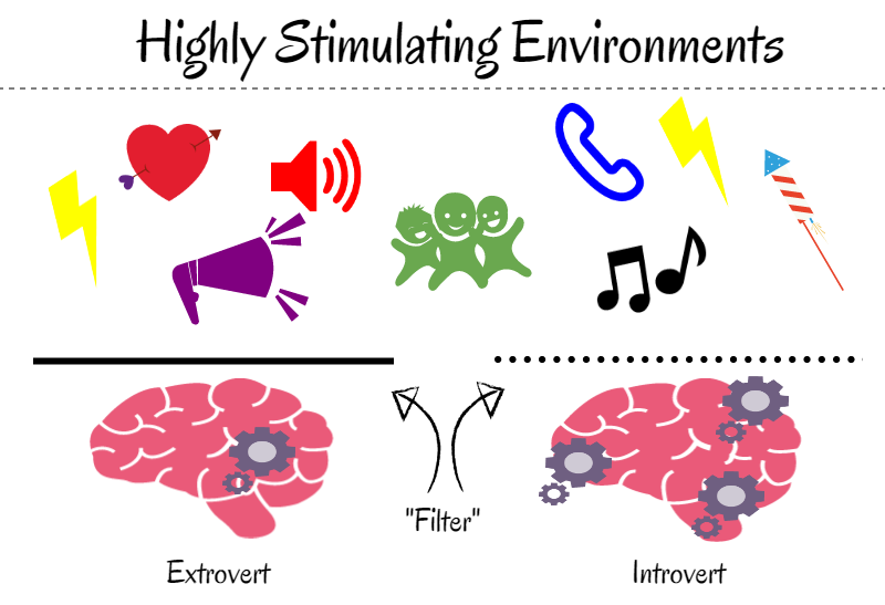 Introverts respond more heavily to stimuli which “drains” their mental batteries. They prefer calm environments to perform optimally and “recharge”. They become bored less rapidly.
